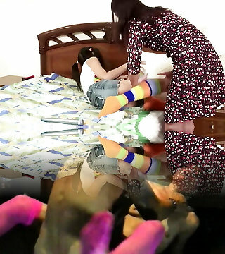 Stunning German teen lesbians dildoing each others cooters in the bedroom