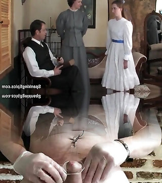 Antique looking brunette maid serves her landlord with suck off