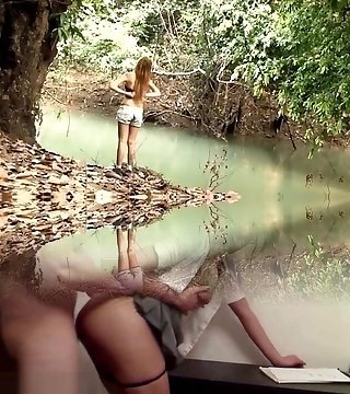 Inborn titted German lady gets her muff wrecked in the middle of the woods