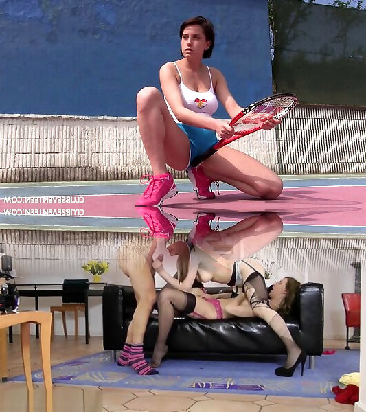Tennis woman frigs her raw vag while out on the court