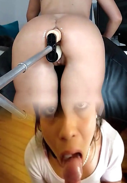 Squirt from double fake penis mashine