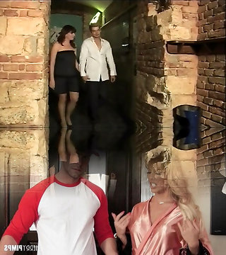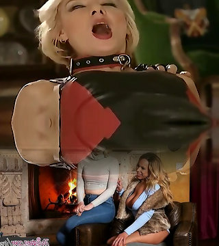 Fine hot ash-blonde housemaid on the laps of a dominant brunette milf
