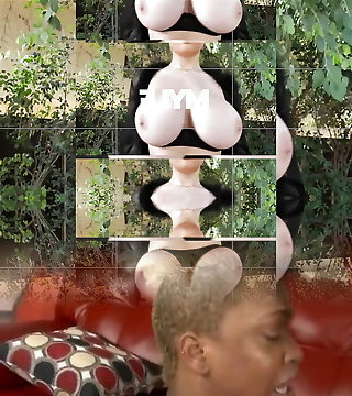 Ebony young man with a unreal gigantic dick feeds chesty babe