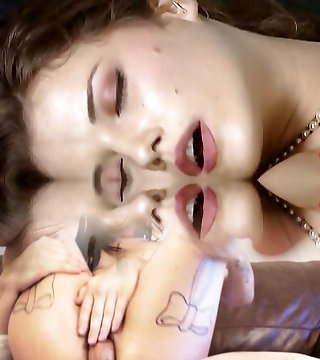 Bosomy dark haired breezy Leslie Bovee seduces her mate by deep throat dick deep-throat