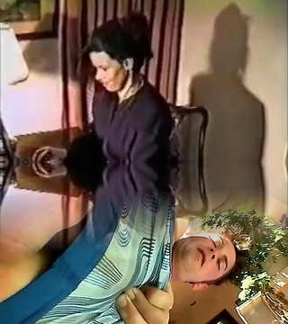 Young dude learns from the hairy grandmother how to fuck - 80's retro