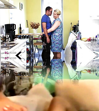 German old Grannie Erika 73 seduce to Fuck in kitchen by Young Guy